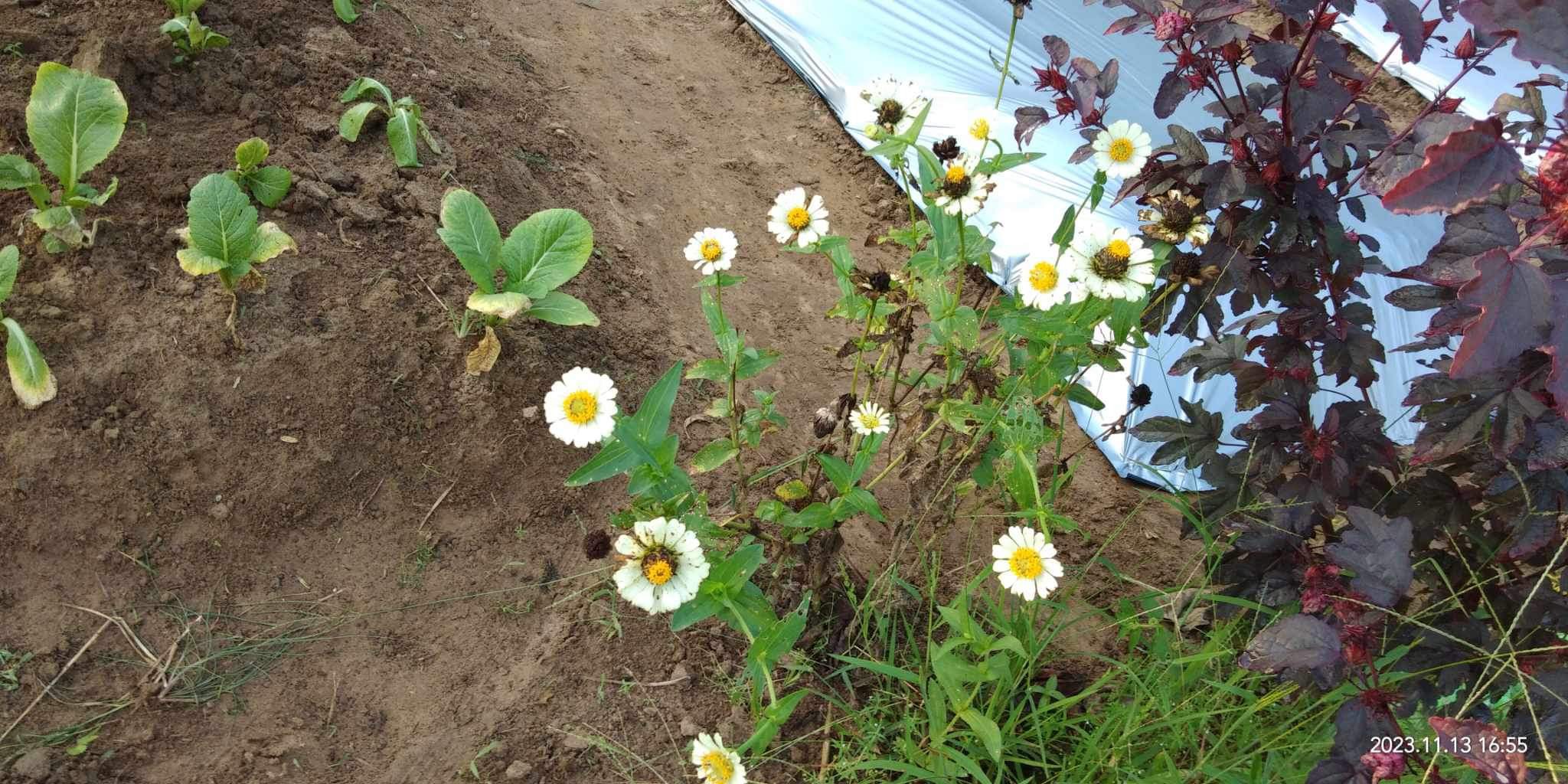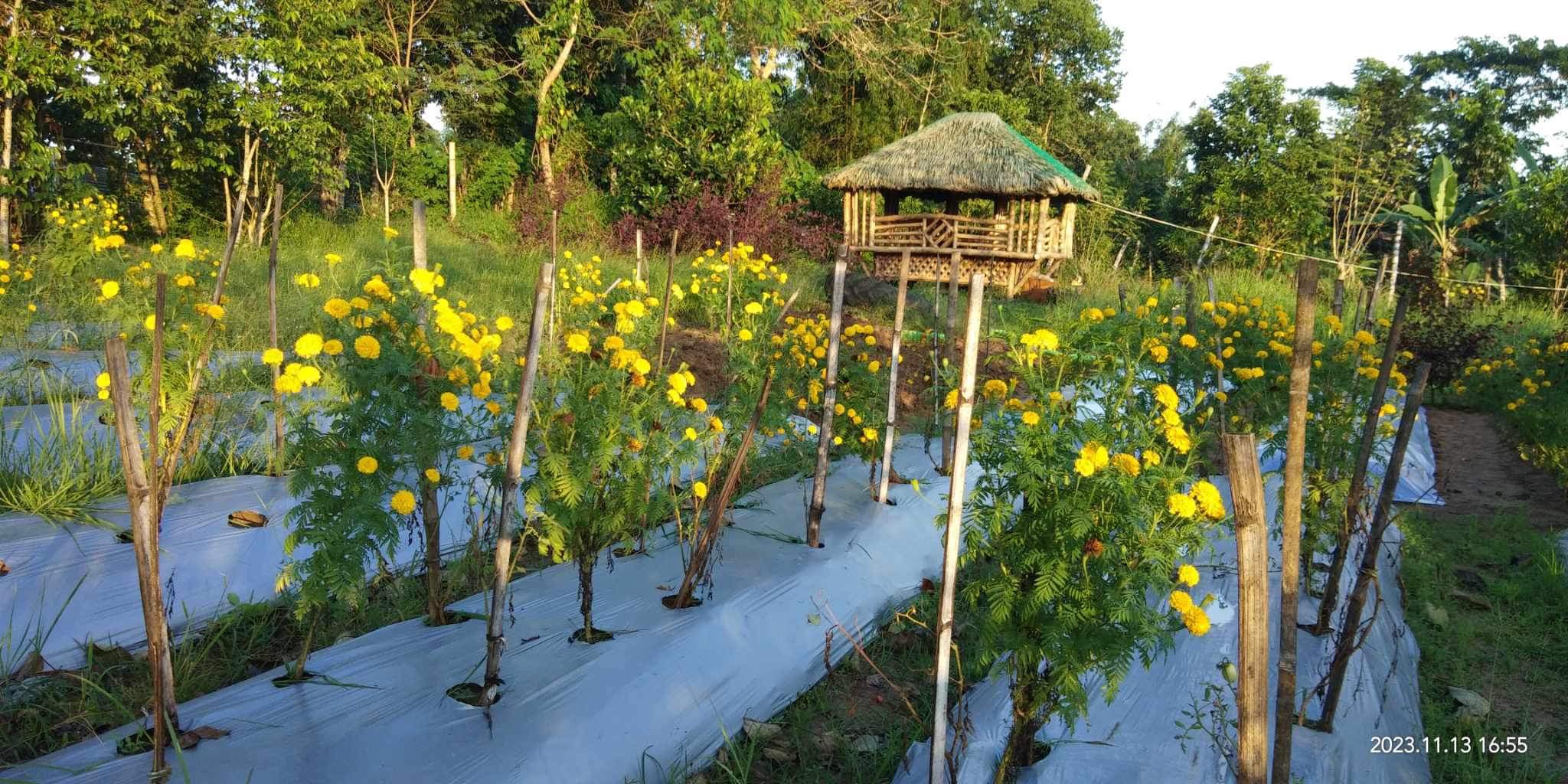 Planting of marigolds: they waited about 3 weeks to plant these, because they said, “That is not a vegetable, and we cannot eat that.” Hence the marigolds have not flowered yet when their vegetables started to flower and bear fruit. Not enough protection was given.