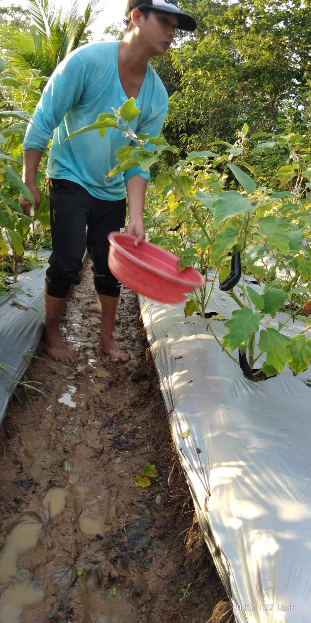 They continue to inspect their plots every day and use their baking soda sprays for bugs they see. They usually see aphids and slugs and they spray their fruits just to make sure the insect borers will not attack them. They have observed that the flying pests that they normally see are not as much, and attribute these to the companion plants they have of marigolds, citronella, and lemon grass bushes.
